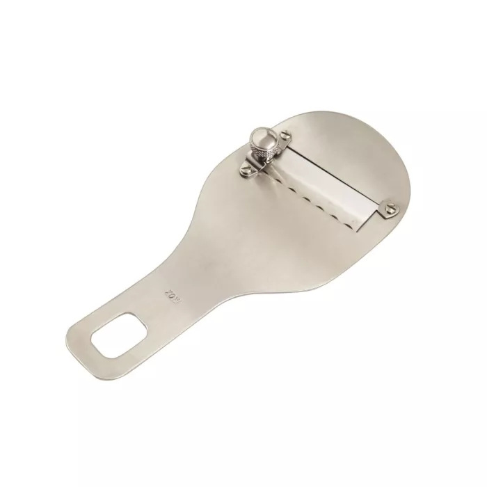 Truffle and chocolate shaver. Adjustable blade. Suitable also for pickles, cherry tomatoes, mushrooms and other small vegetables. Stainless steel. 7.5" Length.