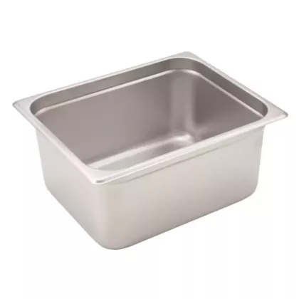The Browne Half Size 6" Deep Stainless Steel Steam Pans are multi functional food pans which are perfect for any catering and prep services. They can go from warm to cool without warping. They feature anti-jamming lines designed for easy stackable storage.