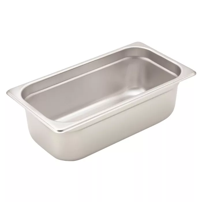 The Browne One Third Size 4" Deep Stainless Steel Steam Pans are multi functional food pans which are perfect for any catering and prep services. They can go from warm to cool without warping. They feature anti-jamming lines designed for easy stackable storage.