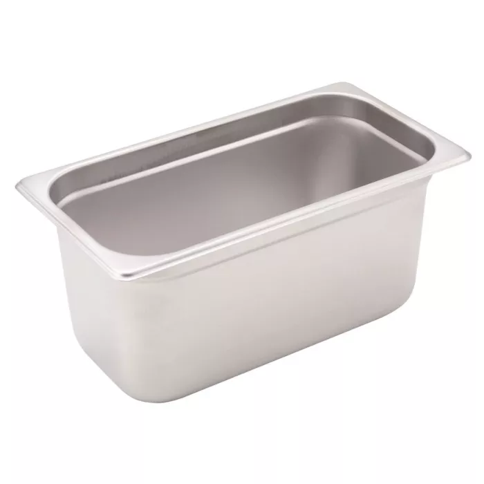 The Browne One Third Size 6" Deep Stainless Steel Steam Pans are multi functional food pans which are perfect for any catering and prep services. They can go from warm to cool without warping. They feature anti-jamming lines designed for easy stackable storage.