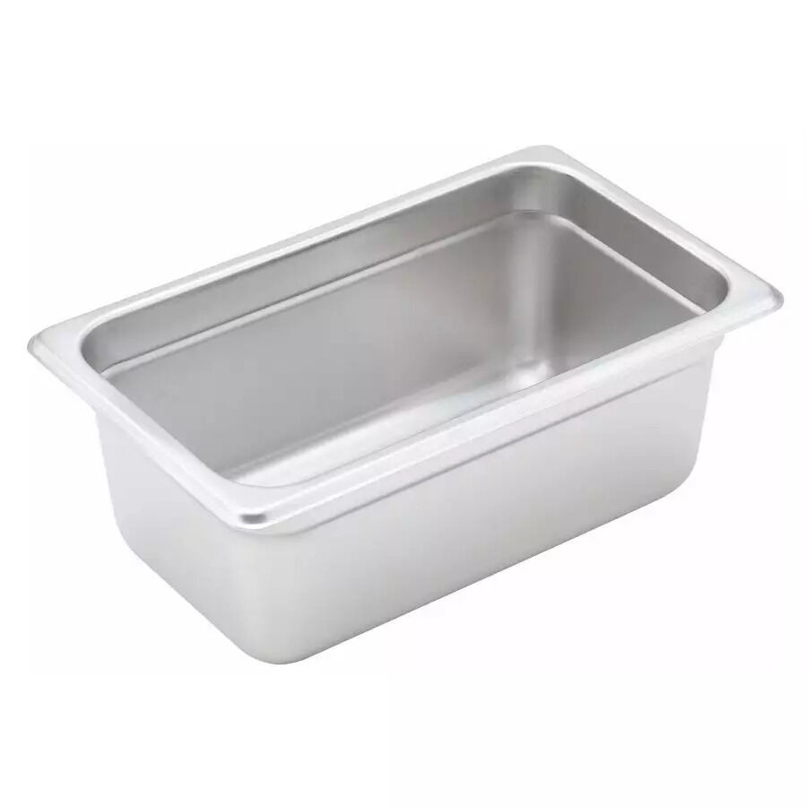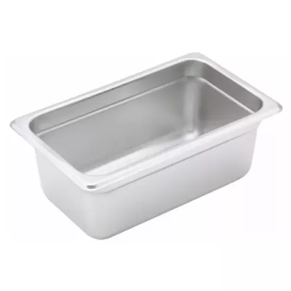 The Browne One Quarter Size 4" Deep Stainless Steel Steam Pans are multi functional food pans which are perfect for any catering and prep services. They can go from warm to cool without warping. They feature anti-jamming lines designed for easy stackable storage.
