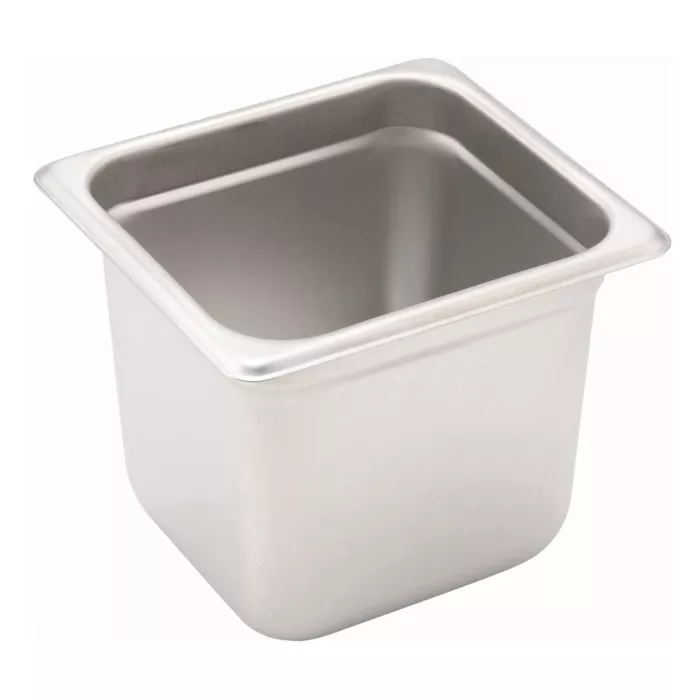 The Browne One Sixth Size 6" Deep Stainless Steel Steam Pans are multi functional food pans which are perfect for any catering and prep services. They can go from warm to cool without warping. They feature anti-jamming lines designed for easy stackable storage.