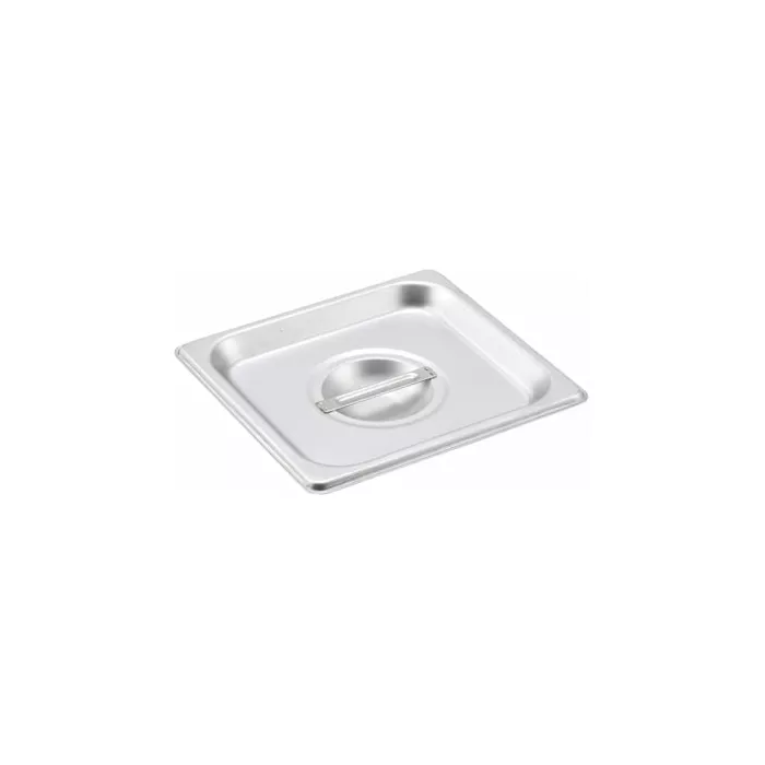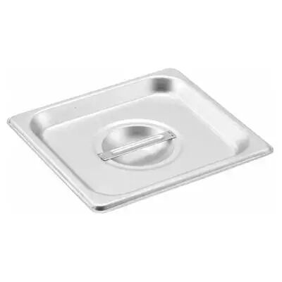 The Browne One Sixth Size Steam Pan Solid Cover has a sturdy center flat handle that’s easy to lift. It keeps food hot or cold and prevents contamination. The bright finish offers elegant presentation.