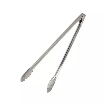 Introducing the Browne Utility Tongs - the ultimate kitchen tool for any home cook or professional chef! Measuring 12" in length, these tongs are coil spring operated for easy and comfortable handling.Crafted from high-quality stainless steel with a mirror finish, these tongs are built to last and can withstand the demands of any busy kitchen. The 1.0 mm thickness of the steel offers superior strength and durability, ensuring that these tongs will last for years to come.The scalloped edges of these tongs provide a secure and firm grip on any food, from delicate fruits to hearty meats. The precision tips allow for easy handling and manipulation of food, making them the perfect tool for grilling, sautéing, and serving.These tongs are not only functional but also stylish, with their sleek and modern design that will complement any kitchen decor. Their easy-to-clean surface ensures that they remain hygienic and free of any unwanted flavors or odors.Invest in the Browne Utility Tongs today and take your cooking experience to the next level with the convenience and durability of these essential kitchen tools!