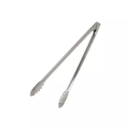 Introducing the Browne Utility Tongs - the perfect kitchen tool for any home cook or professional chef! Measuring 9-1/2" in length, these tongs are coil spring operated for easy and comfortable handling.Crafted from durable stainless steel with a mirror finish, these tongs are built to withstand the demands of any busy kitchen. With a thickness of 1.0 mm, they offer superior strength and durability, ensuring that they will last for years to come.The scalloped edges of these tongs provide a secure grip on any food, from delicate fruits to hearty meats. The precision tips allow for easy handling and manipulation of food, making them the perfect tool for grilling, sautéing, and serving.These tongs are not only functional but also stylish, with their sleek and modern design that will complement any kitchen decor. Their easy-to-clean surface ensures that they remain hygienic and free of any unwanted flavors or odors.Invest in the Browne Utility Tongs today and elevate your cooking experience with the convenience and durability of these essential kitchen tools!