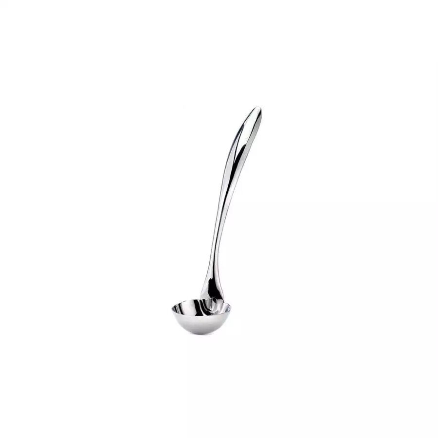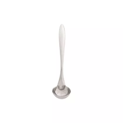 Durable 18/8 mirror finish stainless steel construction. ''Stay Cool'' tapered, hollow handle design provides comfortable grip. Unique arc handle ''easy pick up'' design reduces slippage in servingware.