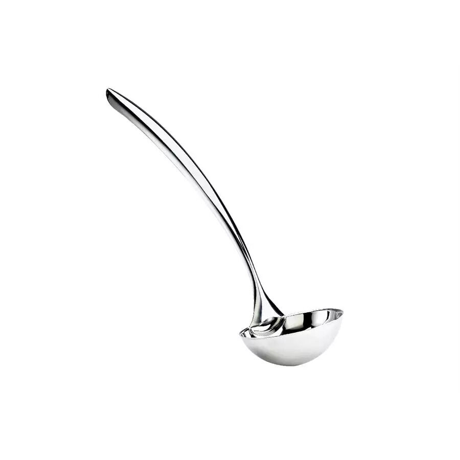 Durable 18/8 mirror finish stainless steel construction. ''Stay Cool'' tapered, hollow handle design provides comfortable grip. Unique arc handle ''easy pick up'' design reduces slippage in servingware.