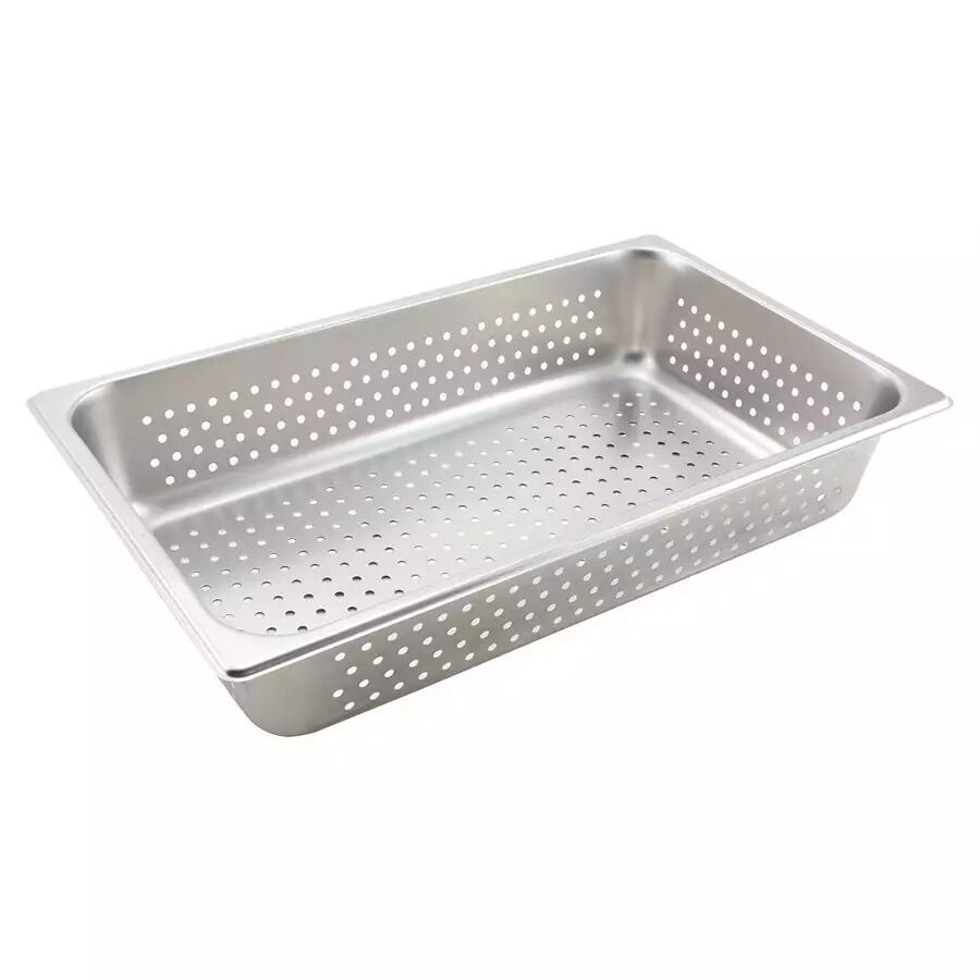The Nella Full Size Perforated 4" Deep Stainless Steel Steam Pans are multi functional food pans which are perfect for any catering and prep services. Ideal for steaming foods or draining fats, juices or moisture. They can go from warm to cool without warping. They feature anti-jamming lines designed for easy stackable storage.