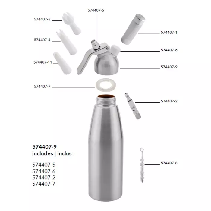 It's specifically designed for stainless steel models of whipped cream dispensers, ensuring compatibility and efficient operation. The stainless steel construction of the head adds durability and reliability to your dispenser, making it a long-lasting and essential component for whipping up delicious, fluffy whipped cream.Whether you're a professional chef or a home cook who enjoys adding a touch of elegance to your desserts and beverages, the Browne Mosa Whip Cream Head is a vital part of your whipped cream dispenser. It ensures that you can consistently achieve the perfect whipped cream texture, enhancing the presentation and taste of your culinary creations. Enjoy the convenience and reliability this whip cream head brings to your kitchen.