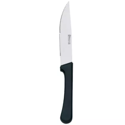 The Browne Omaha 10" Steak Knife is a durable and reliable tool for cutting through even the toughest meats. Its pointed tip allows for easy piercing, while its sharp blade effortlessly slices through steaks, chops, and more. The knife features a comfortable black handle that provides a secure grip and a sleek appearance. Its 10-inch length makes it suitable for larger cuts of meat, and its sturdy construction ensures it can withstand heavy use in a commercial kitchen. Whether you're running a restaurant or simply looking for a high-quality steak knife for home use, the Browne Omaha 10" Steak Knife is a great choice.