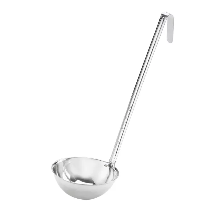 Introducing the Browne Optima Ladle, the perfect tool for serving soups, sauces, and gravies with precision and ease. With a 2 ounce capacity and an 11 inch length, this ladle is designed to handle a variety of serving needs, from individual portions to large batches.The one-piece construction of the ladle ensures durability and longevity, while the grooved handle provides a comfortable and secure grip during use. With a 1.0 mm thickness and made from high-quality stainless steel, this ladle is built to withstand the rigors of frequent use.The mirror finish of the ladle adds a touch of elegance to your serving collection and makes it easy to clean and maintain. Its compact size also makes it easy to store and transport, making it an ideal tool for catering events or on-the-go serving.Whether you're a professional chef or an enthusiastic home cook, the Browne Optima Ladle is an essential tool that you won't want to be without. Order yours today and elevate your serving game to the next level!