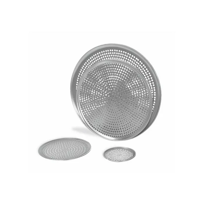 1.0 mm gauge .040 thickness, aluminum. Pizza bottom cooks faster and makes crispier crust.