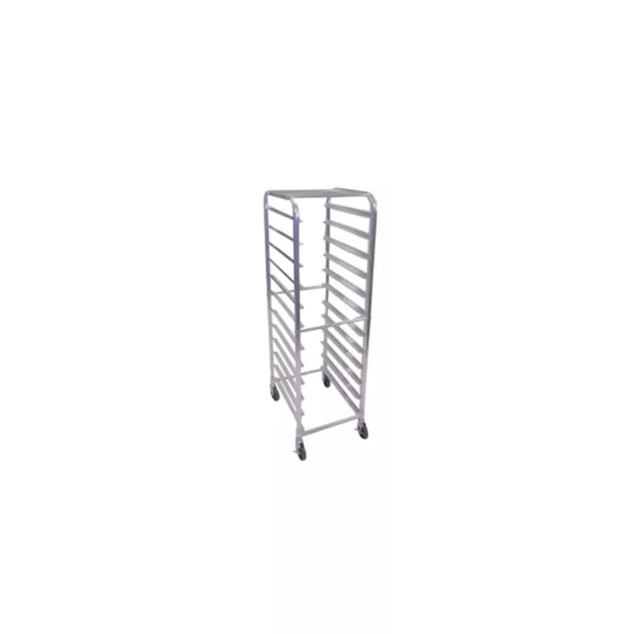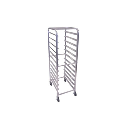 Holds 12 full-size sheet pans. Made of aluminum for lasting durability. Has rail-type ledges to support pans.