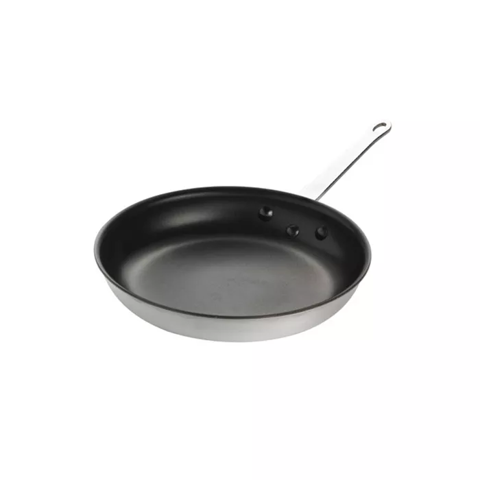 Heavy weight non stick fry pan is a versatile piece of cookware that any home or commercial kitchen Use for sautéing, cooking meats and more. Constructed from 5-gauge standard weight aluminum. This fry pan is prepared to withstand the demands of any commercial or residential environment beautifully. It has been treated with an Eclipse non-stick coating. NSF approved.