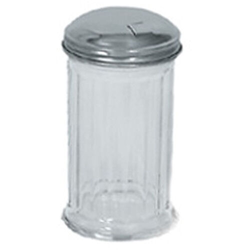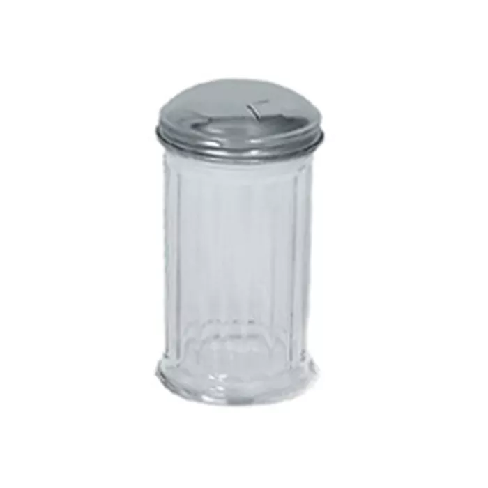 Fluted glass. Stainless steel top with self-closing side spout. 12 oz.