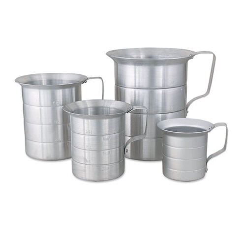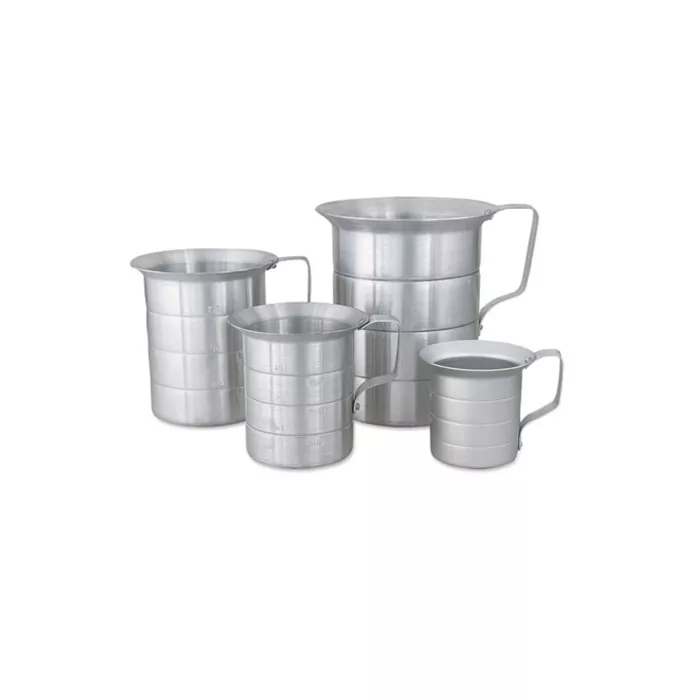 5-1/8" x 5-1/8", capacity markings, large riveted handles, seamless construction, 1.8 mm thickness, heavy-duty aluminum