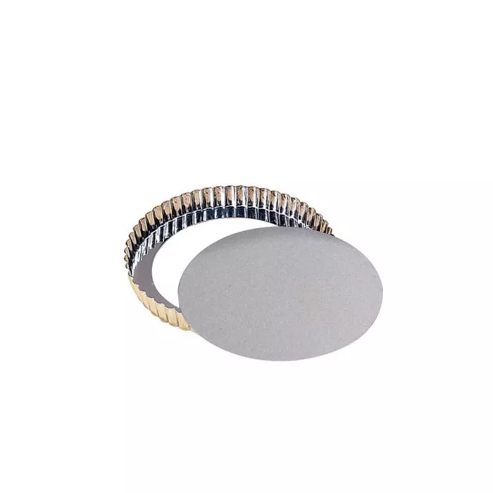 Tinned. Removable bottom. Low rim.