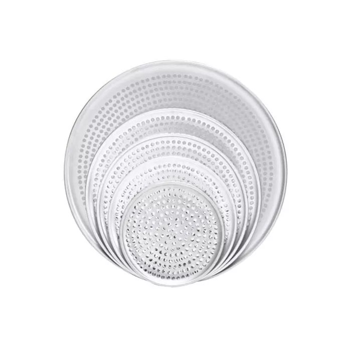 18 gauge. 1.0mm thickness. Pizza bottom cooks faster and makes crispier crust.
