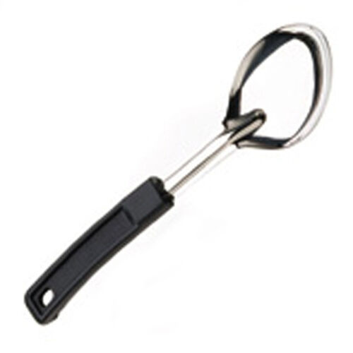 Stainless steel. Polypropylene handle, with hanging hole. Grooved handle for added durability. 1.5 mm thickness.