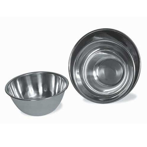 18/8 stainless steel. Mirror finish with rolled edge. Depth of bowl makes mixing easier. 0.7 mm thickness.