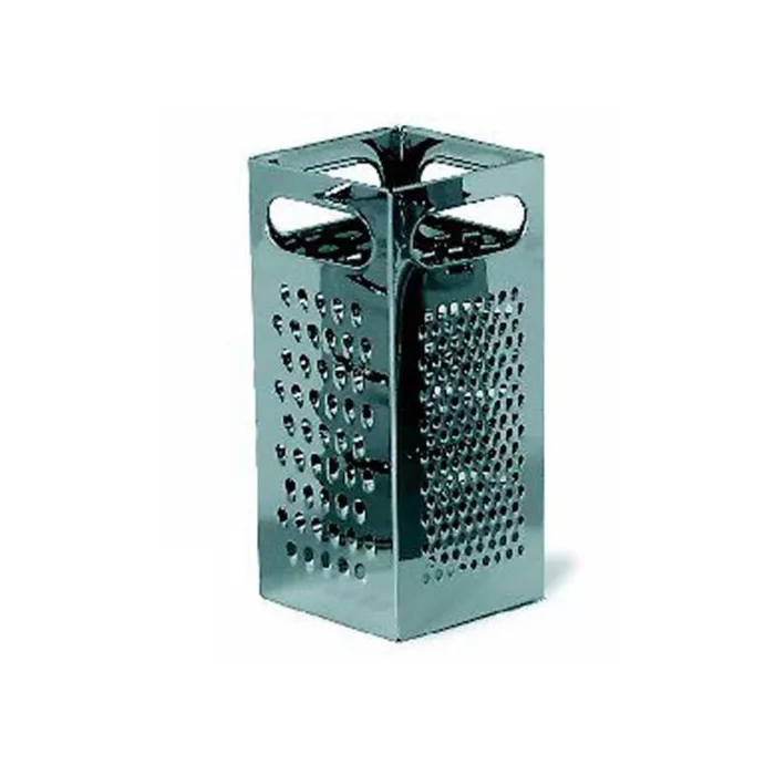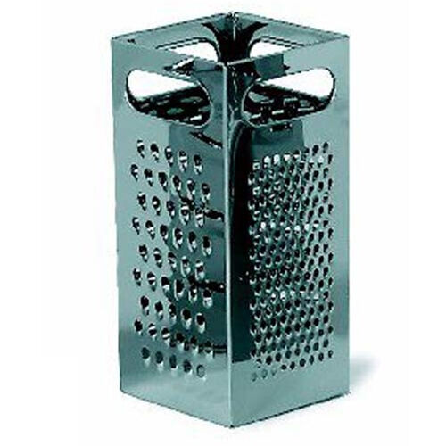 Stainless steel. Four different surfaces: coarse and medium shredder, slicer and julienne cuts.