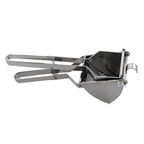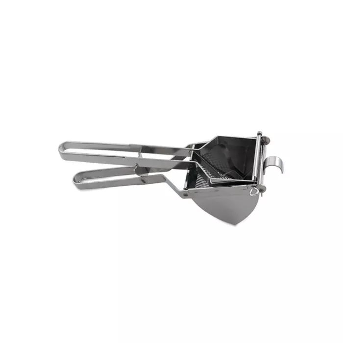 Potato hopper securely welded to frame. Made of stainless steel. Hopper measures 5-inch length by 4-1/2-inch width