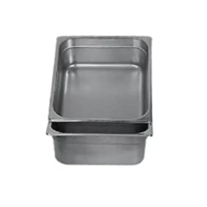 Steam table, anti-jamming pan. Anti-jam design covers full perimeter of pan, preventing damaged edges. Space between pans creates ventilation allowing pans to dry completely for proper sanitation. Reinforced edges & corners resist bending. Stainless steel.
