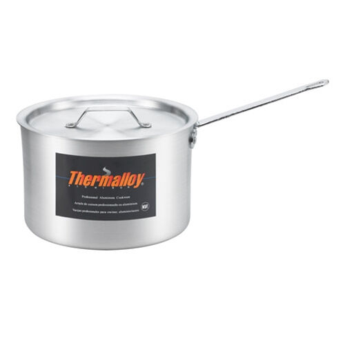 Professional quality aluminum cookware has excellent heat conductivity and is less expensive than most other types of cookware. Durable aluminum construction guarantees even heating across the bottom. Oversized handles securely fastened with heavy-duty rivets. Covers are 2.5mm and securely fastened by heavy-duty rivets. but are sold separately, unless noted otherwise. Lustrous satin finish. Heat resistant removable fry pan sleeves available. 4.00mm - 6 gauge. NSF listed.