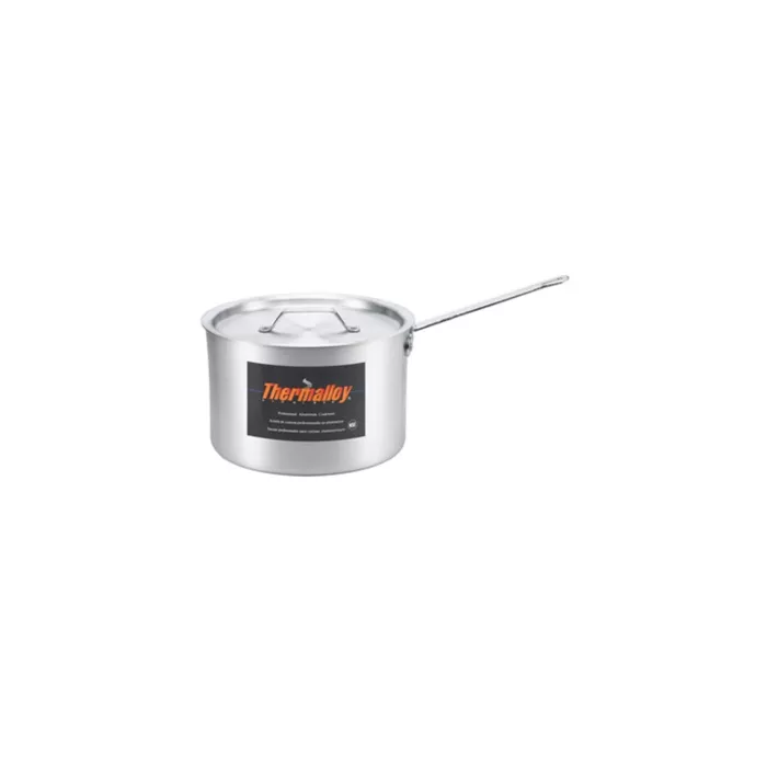Professional quality aluminum cookware has excellent heat conductivity and is less expensive than most other types of cookware. Durable aluminum construction guarantees even heating across the bottom. Oversized handles securely fastened with heavy-duty rivets. Covers are 2.5mm and securely fastened by heavy-duty rivets. but are sold separately, unless noted otherwise. Lustrous satin finish. Heat resistant removable fry pan sleeves available. 4.00mm - 6 gauge. NSF listed.