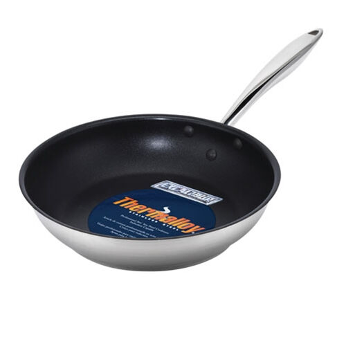 Stainless steel with a clad aluminum disk base provides all-round value in cookware. It cleans easily, has good heat conductivity and will not react with acidic foods. 6 mm (1/4") aluminum sandwich base for fast even heating. Stay cool handle resists heat transfer.
