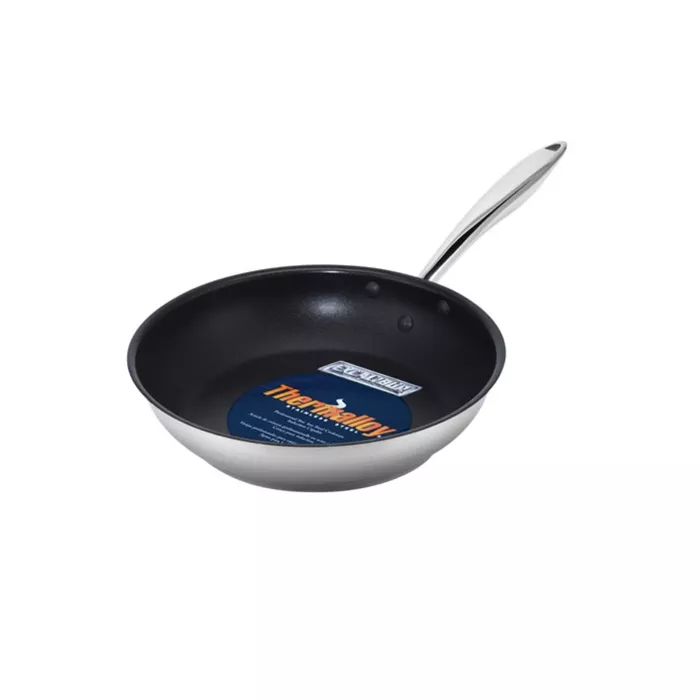Stainless steel with a clad aluminum disk base provides all-round value in cookware. It cleans easily, has good heat conductivity and will not react with acidic foods. 6 mm (1/4") aluminum sandwich base for fast even heating. Stay cool handle resists heat transfer.