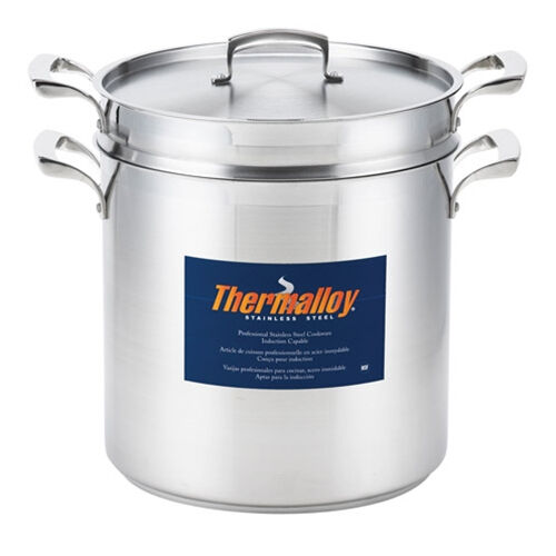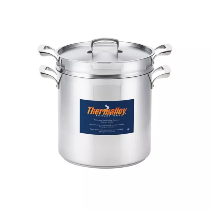 20-qt Stainless Double Boiler w/ insert and cover. Stay cool riveted handles are made from stainless steel NSF construction