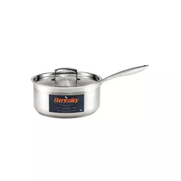 18/10 stainless. Heavy duty construction. "Stay Cool" hollow handle. 6mm aluminium sandwich bottom. 2-tone exterior finish (satin with mirror band). Induction capable. Cover sold separately.