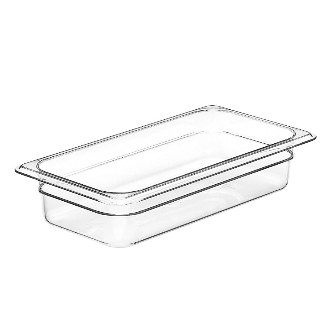 Store, transport, and serve all-in-one with the Cambro 32CW135 1/3 Size Food Pan 2.5" Deep built from virtually unbreakable Camwear®! This Gastronorm designed solution is half the cost of stainless steel and keeps product just as cold for just as long, outstanding for prep stations, buffets, and banquet service. Withstands temperatures -40°F to 210°F (-40°C to 99°C), and resists chemicals for added flavor and freshness protection.