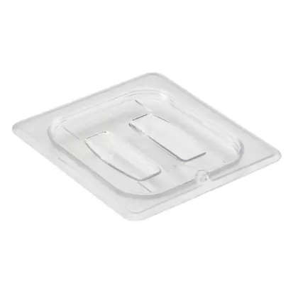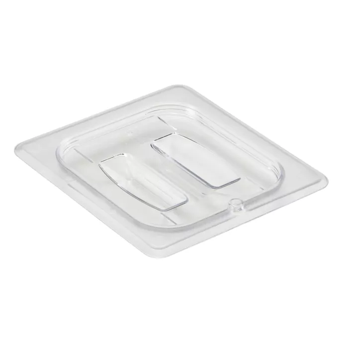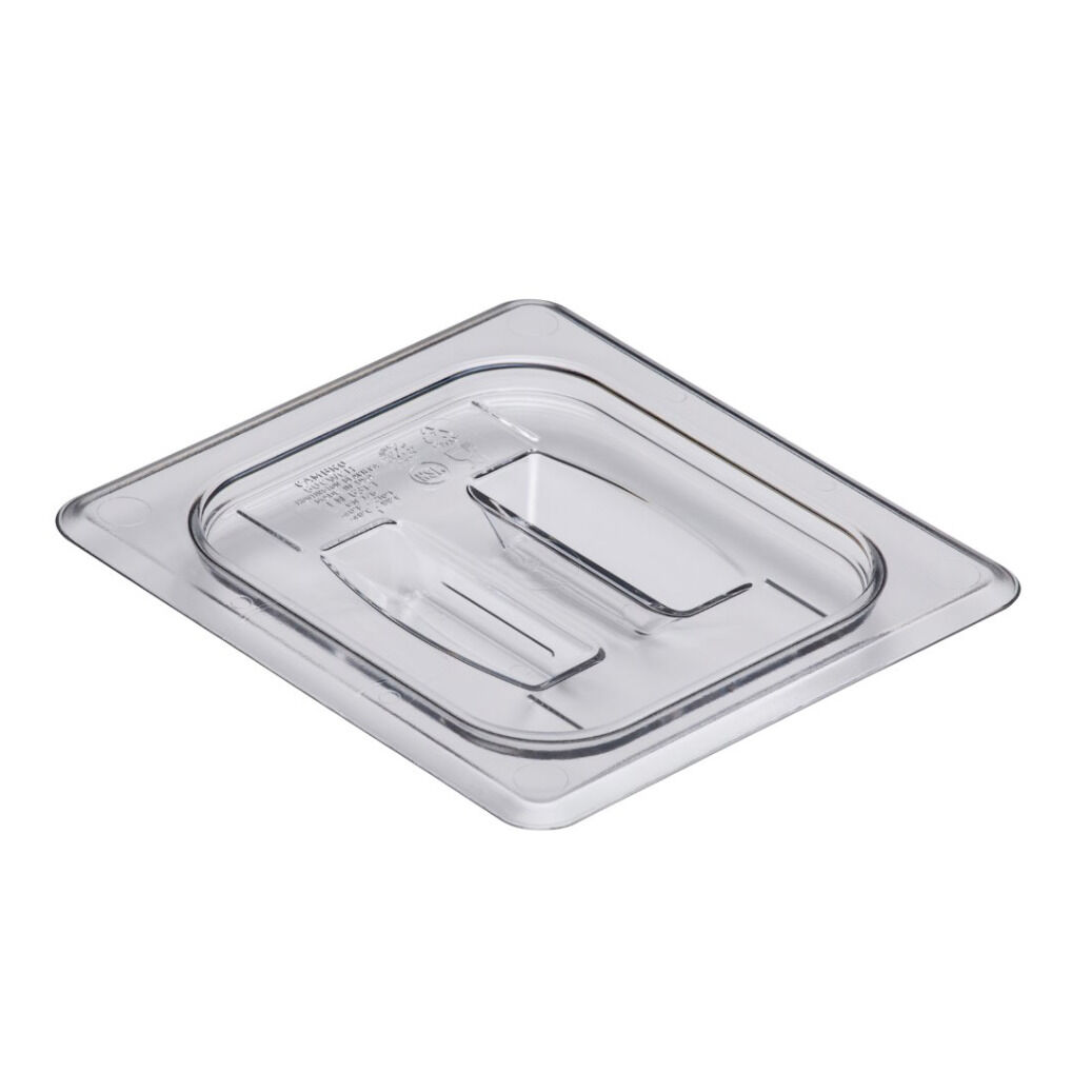 Camwear® Cambro 60CWCH135 1/6 Size Flat Food Pan Cover with Handle offers durability and a variety of options to preserve freshness! Designed to support HACCP guidelines, Camwear® lids are ideal for use in prep tables, reach-in refrigerators, and walk-in coolers.