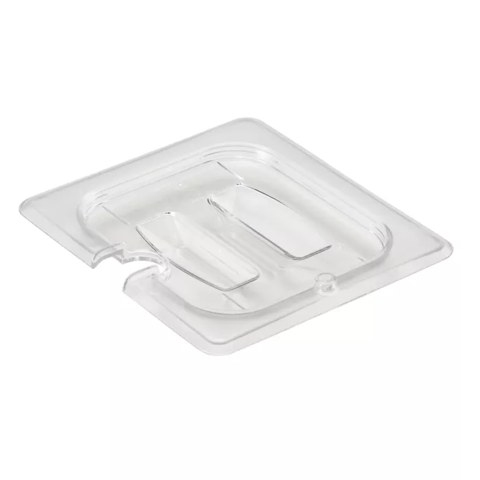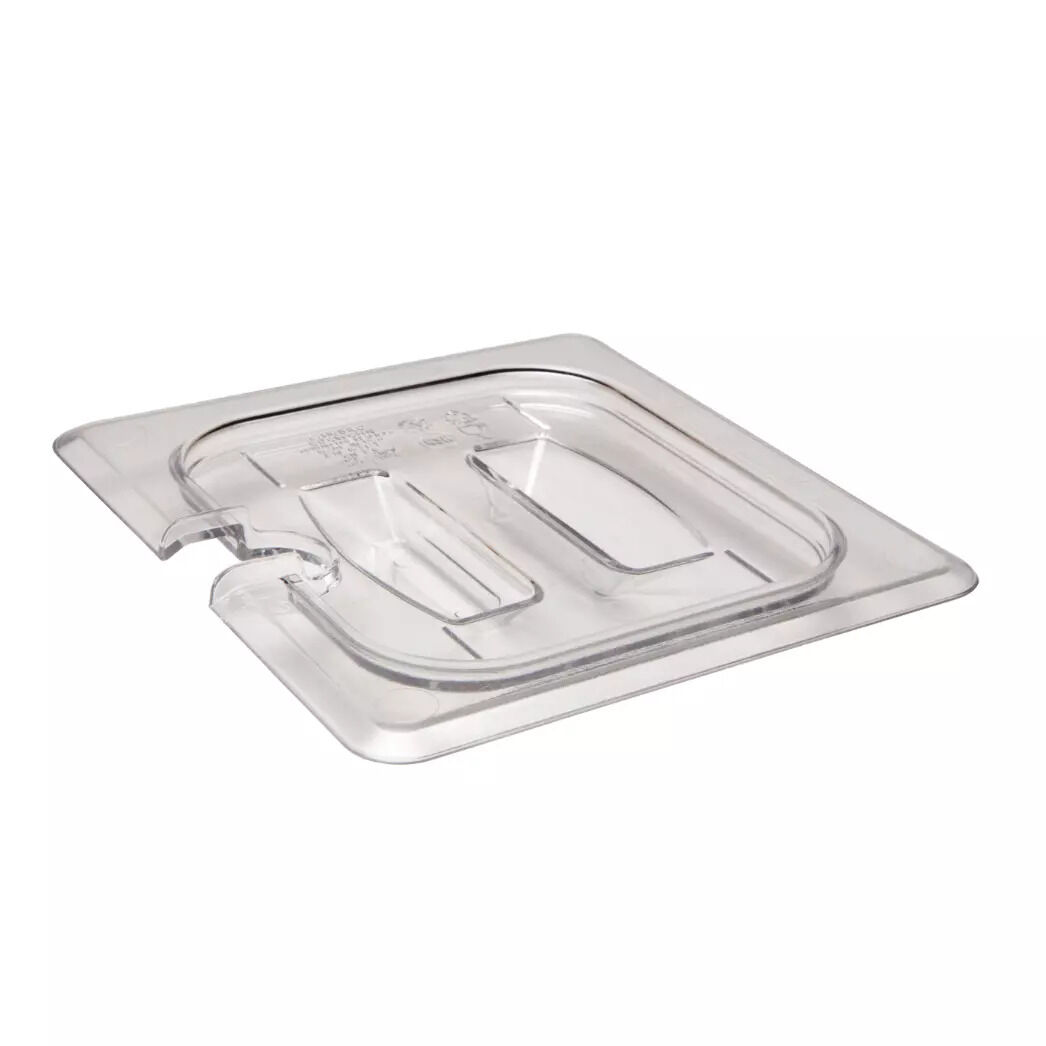 Camwear® Cambro 60CWCHN135 1/6 Size Notched Food Pan Cover with Handle offers durability and a variety of options to preserve freshness! Designed to support HACCP guidelines, Camwear® lids are ideal for use in prep tables, reach-in refrigerators, and walk-in coolers.
