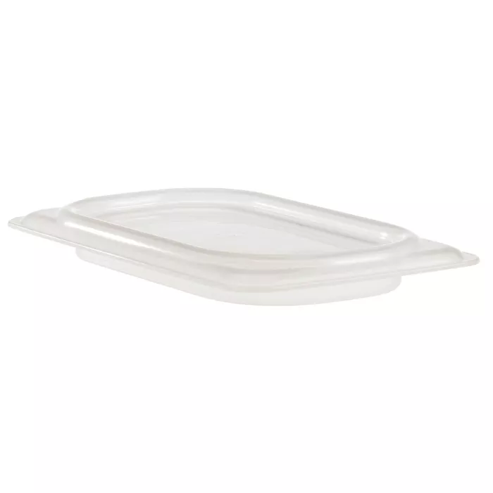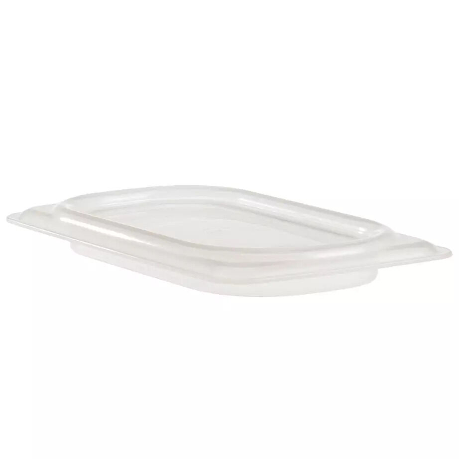 Cambro 90PPCWSC190 1/9 Size Food Pan Covers offer superior spill resistance over traditional food pan covers, with an inner seal that extends shelf life up to 3 days. A great choice for prep tables, reach-in refrigerators, and walk-in coolers, Seal Covers protect the contents of Camwear® and translucent food pans throughout storage and service.