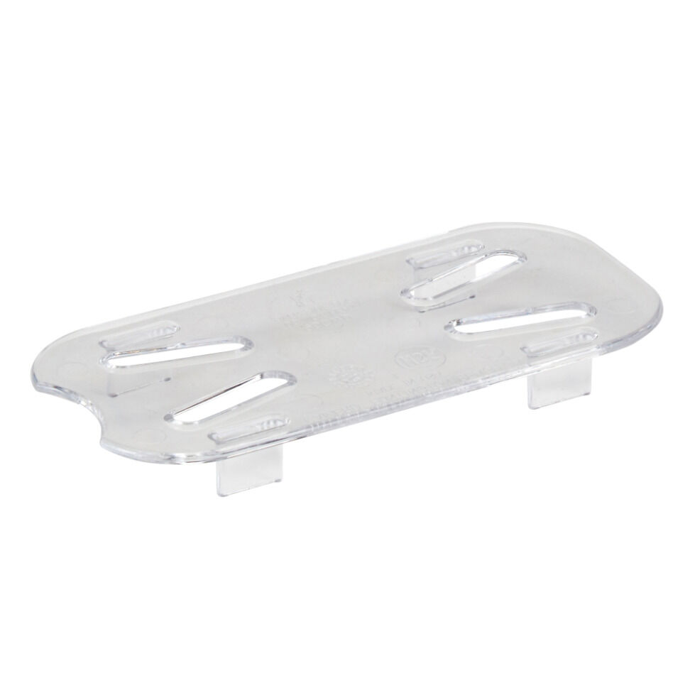 Camwear® Cambro 90CWD135 1/9 Size Food Pan Drain Shelves lift contents out of liquids to enhance food quality and freshness. Made of virtually unbreakable polycarbonate, the drain shelf is an easy step to crisp produce and fresh meat, ideal for defrosting.