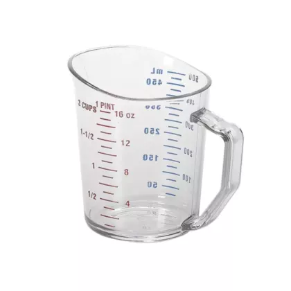 Perfect for measuring liquid ounces, pints, quarts or litres, ensuring an accurate measurement. They won’t dent like metal.Externally marked graduations in American standard and metric are molded-in. Made of rugged, virtually unbreakable Camwear® polycarbonate.Molded-in handle won’t break off.