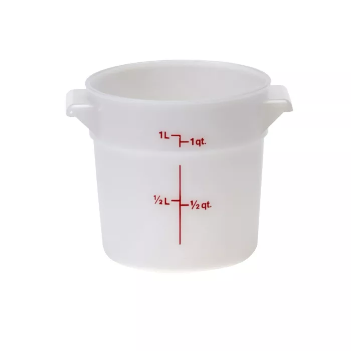 Better utilize your storage space with the Cambro RFS1, 1 Qt Round Food Storage White Container, a budget friendly storage solution!