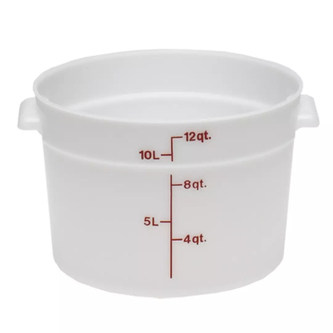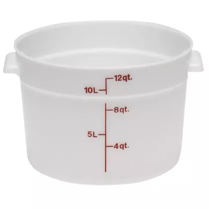 Better utilize your storage space with the Cambro RFS12-148, 12 Qt Round Food Storage White Container, a budget friendly storage solution!