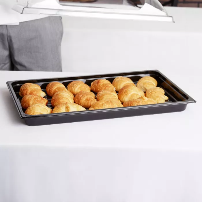 These display trays are very good for showcasing various cakes, pastries, breads or desert. The trays are stackable and the opening on the side or end provide quick and easy access to contents without removing the cover.
