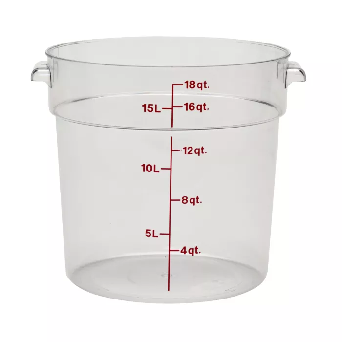 Revolutionize your kitchen with durable Cambro RFSCW18, 18 Qt Round Food Storage Clear Container, ensuring extra freshness and savings for your ingredients! This crystal-clear design is virtually unbreakable, outstanding for fast paced kitchens.