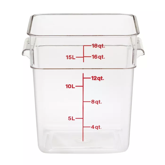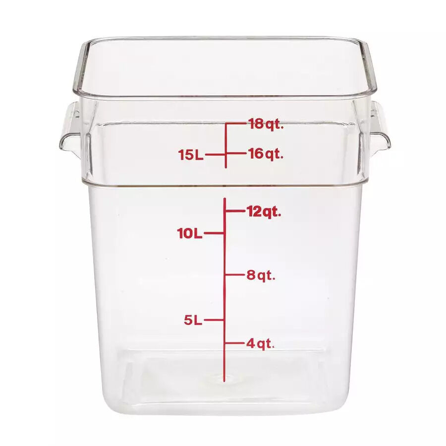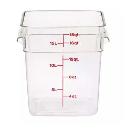 Revolutionize your kitchen with durable Cambro 18SFSCW, 18 Qt Square Food Storage Clear Container, ensuring extra freshness and savings for your ingredients! This crystal-clear design is virtually unbreakable, outstanding for fast paced kitchens.