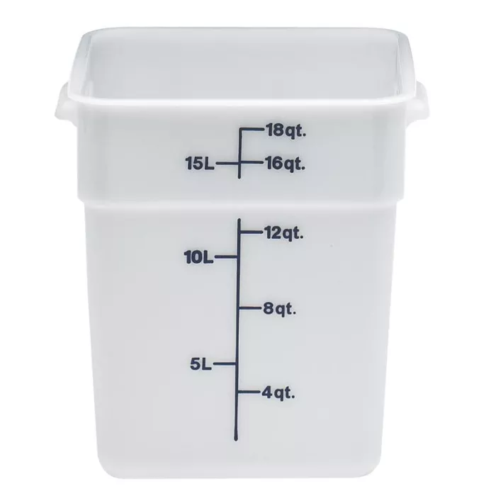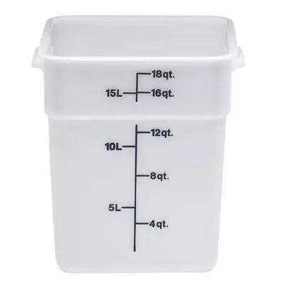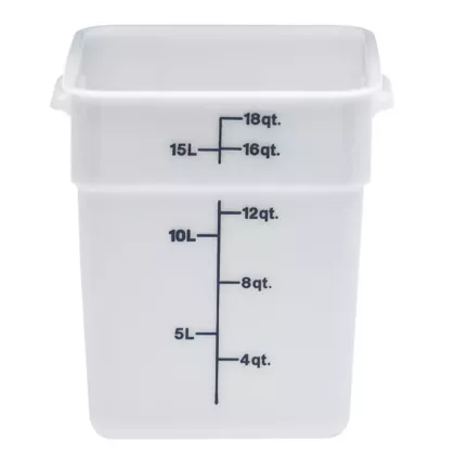 Better utilize your storage space with the Cambro 18SFSP148, 18 Qt Square Food Storage White Container, a budget friendly storage solution!