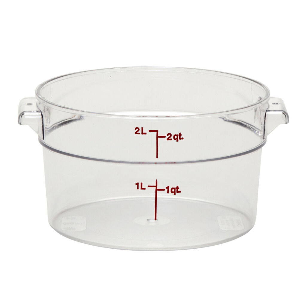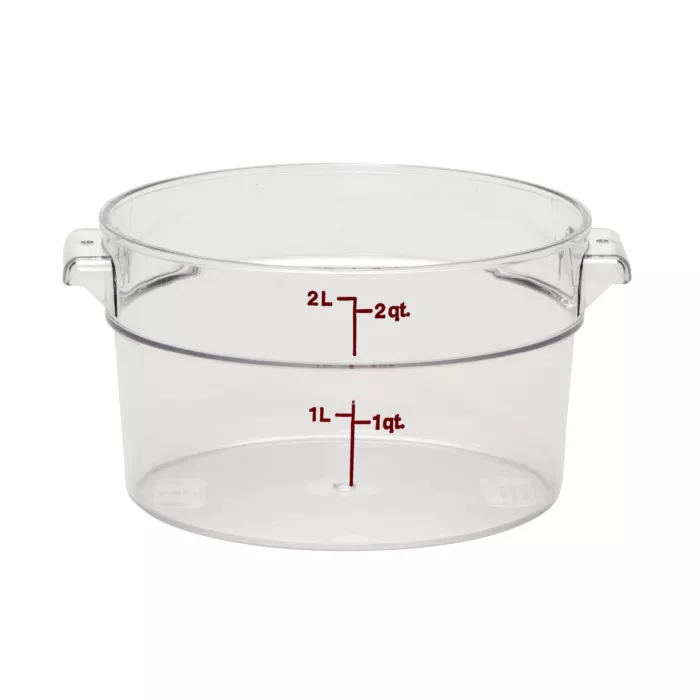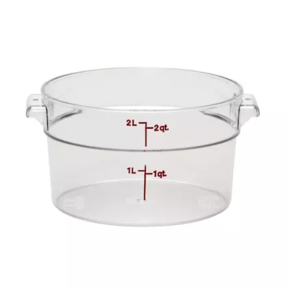 Revolutionize your kitchen with durable Cambro RFSCW2, 2 Qt Round Food Storage Clear Container, ensuring extra freshness and savings for your ingredients! This crystal-clear design is virtually unbreakable, outstanding for fast paced kitchens.