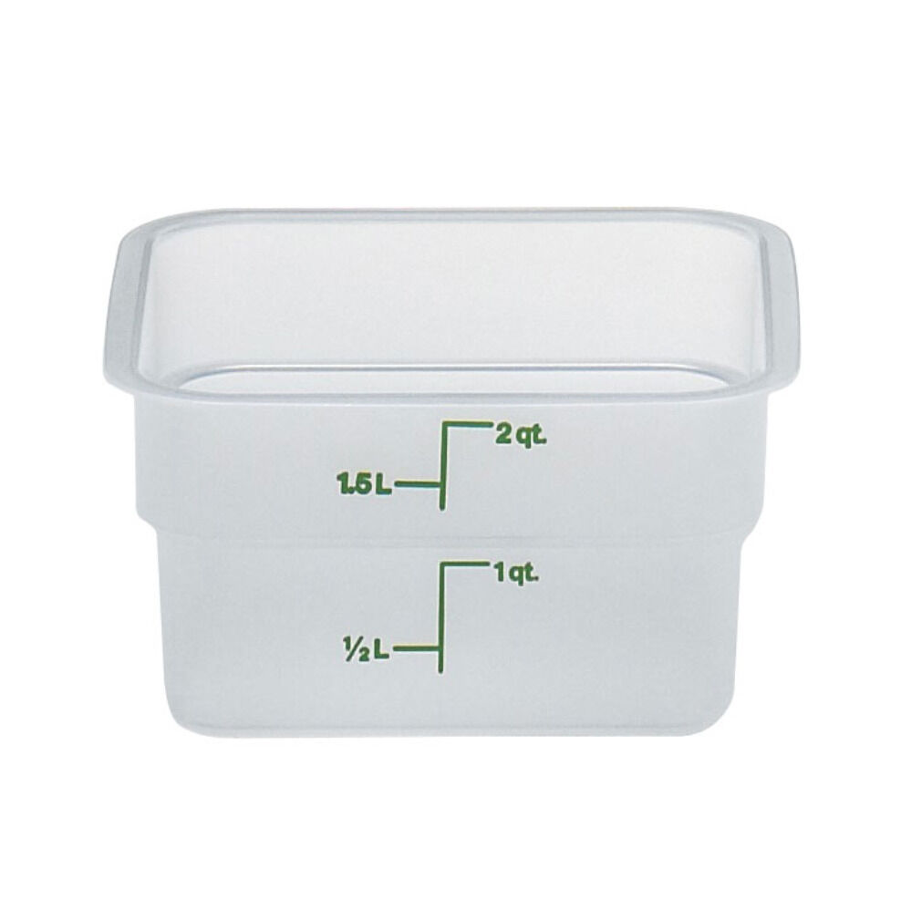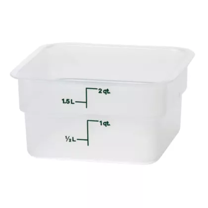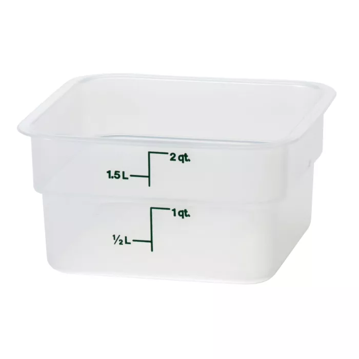 Store your ingredients and prepared foods with durable Cambro 2SFSPP190, 2 Qt Square Food Storage Translucent Container, better utilizing space over traditional round containers!
