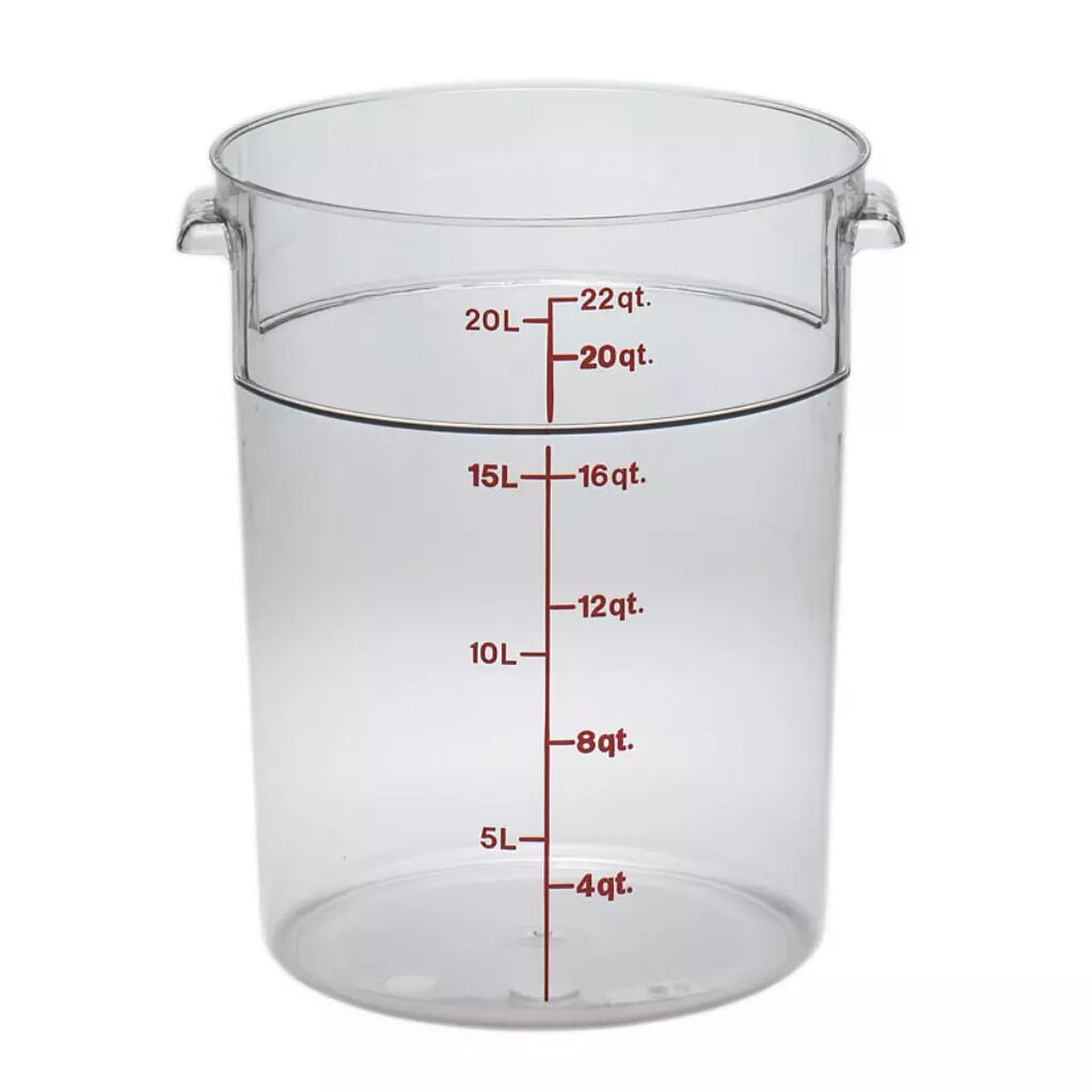 Revolutionize your kitchen with durable Cambro RFSCW22, 22 Qt Round Food Storage Clear Container, ensuring extra freshness and savings for your ingredients! This crystal-clear design is virtually unbreakable, outstanding for fast paced kitchens.