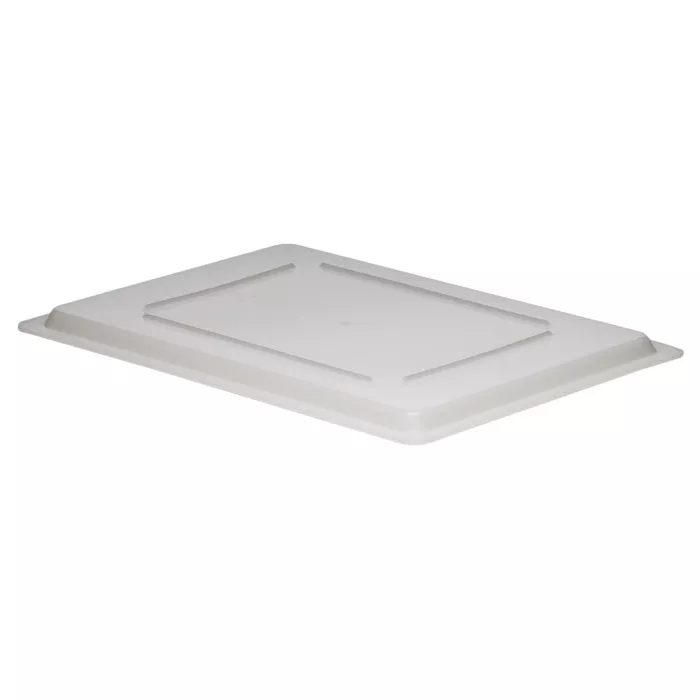 Secure bulk ingredients with the durable Cambro 1826CP148 26" x 18" Flat Food Storage Cover, White, creating a complete protection system with Poly Food Boxes. Withstanding stains and chemicals, Flat Lids are designed from economical, highly durable material that limits light exposure to contents.