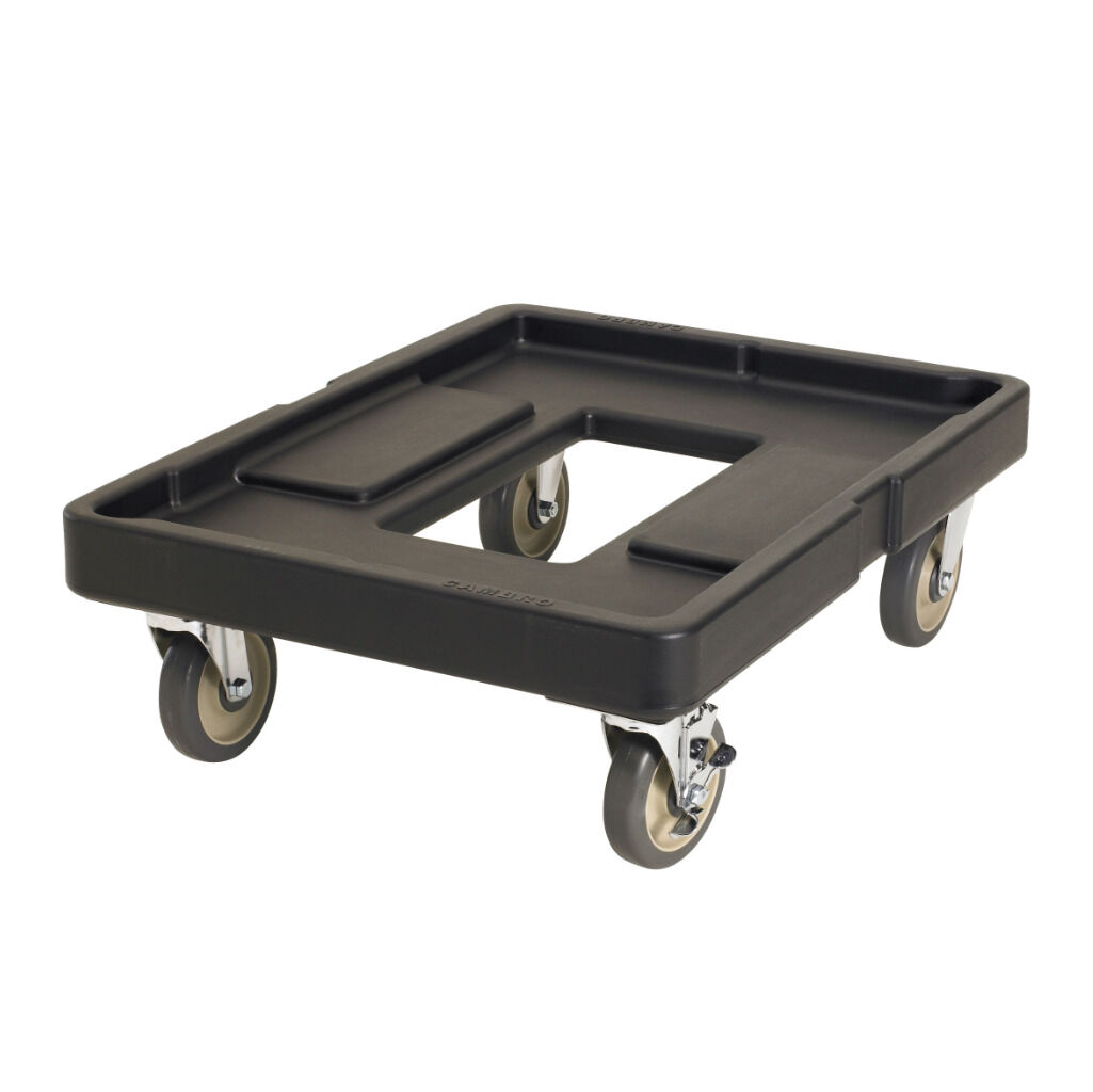 The Cambro CD400110 28" x 21" Camdolly for Cam Carriers prioritize safety for staff and more easily transport prepared meals for catering. Offering a variety of models ideal for securely transporting beverage servers and pan carriers, the Camdolly reduces employee lifting and carrying, reducing possible injury.